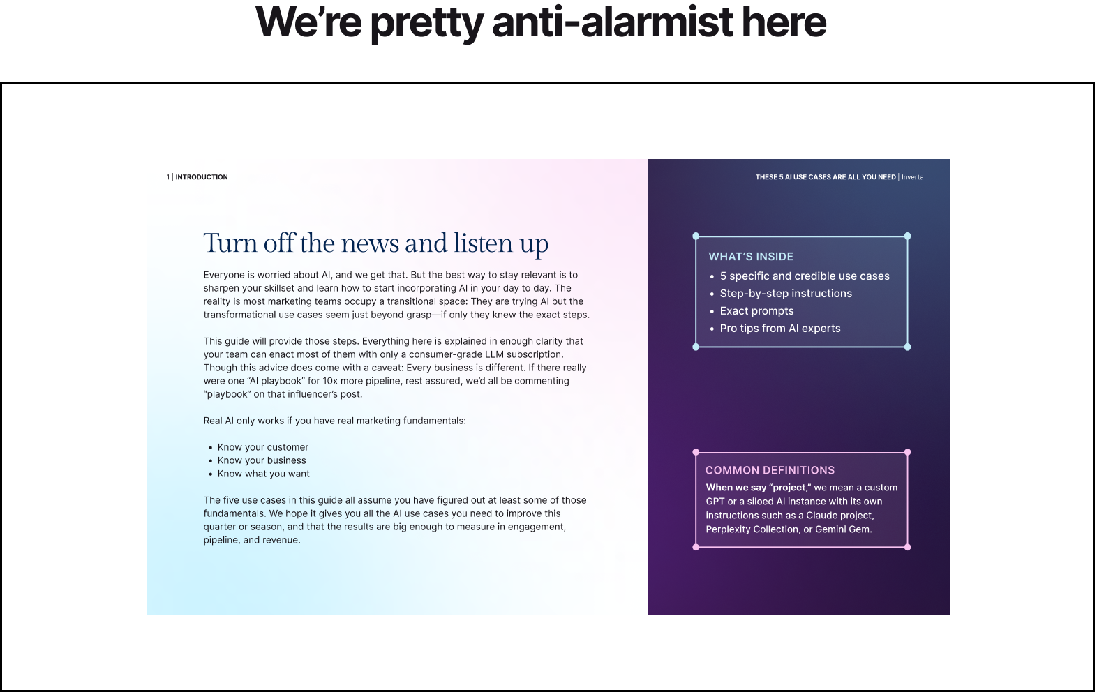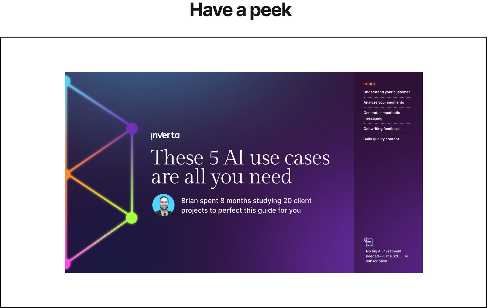Inside you’ll find the five specific and credible use cases with step-by-step instructions and prompts. No fluffery. Just Brian’s findings which we now apply internally here and recommend to our clients.