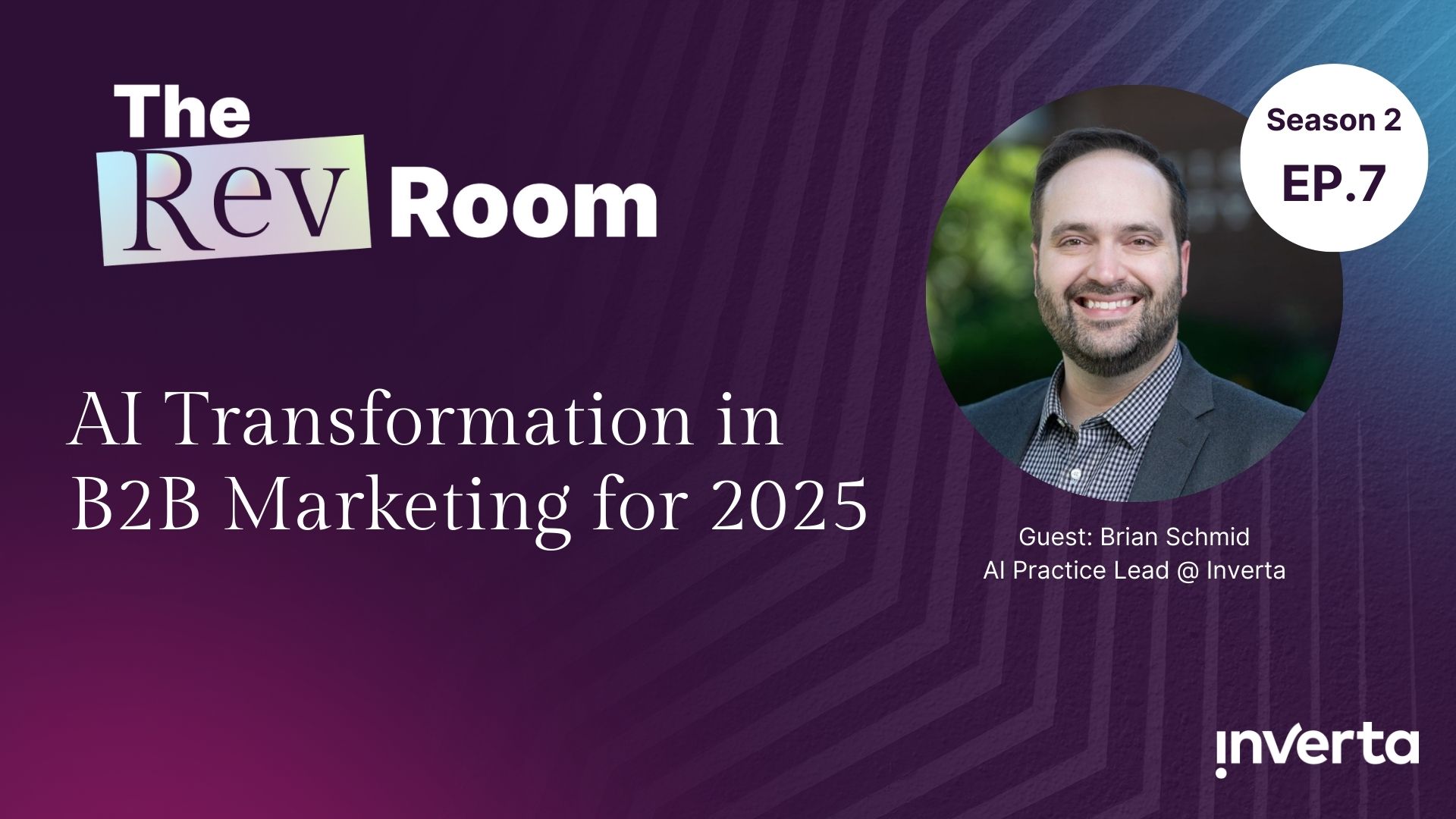 Marketing teams everywhere are implementing AI—but are they doing it strategically? In our latest episode of The RevRoom, Inverta's AI Practice Lead Brian Schmid returns to share what we've learned since implementing AI tools across our organization and with clients.